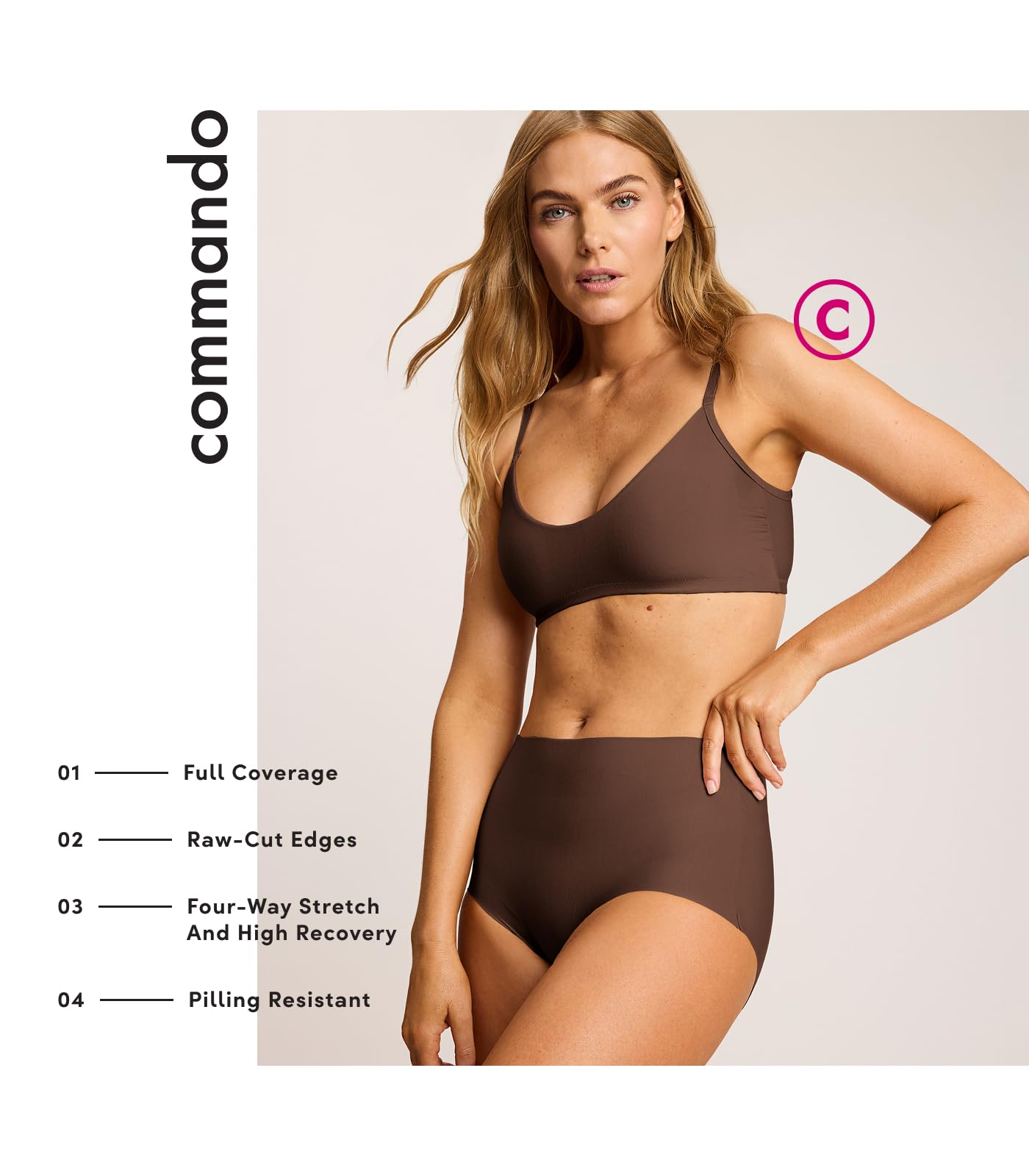 commando Classic High-Rise Bikini | Seamless High-Waist Panty | Luxe Microfiber Fabric | Raw-Cut Edges for Invisible Comfort | Mocha, L/XL