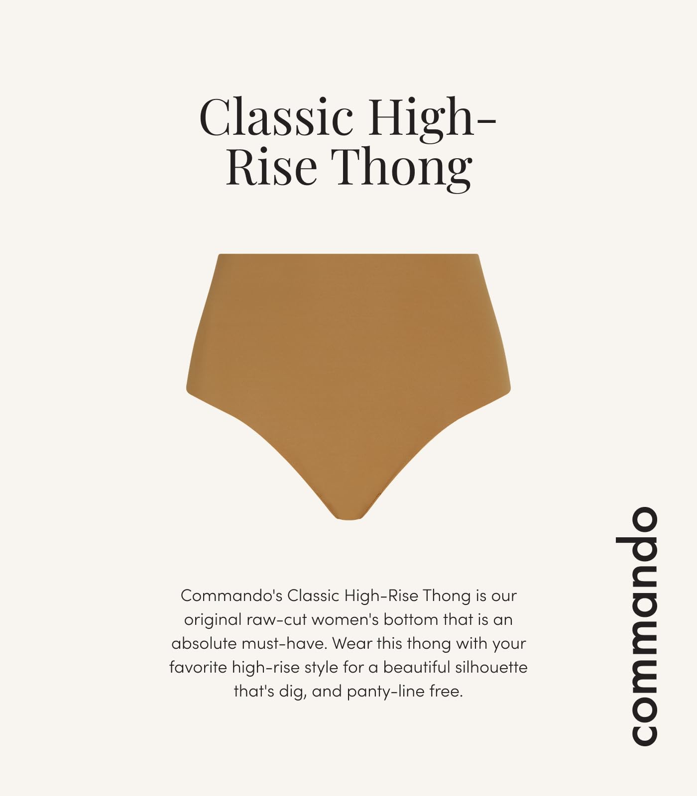 commando Classic High-Rise Thong | Luxury-Tech European Microfiber Thong | Raw-Cut with Invisible Finish | High Coverage Front | Caramel, Medium-Large