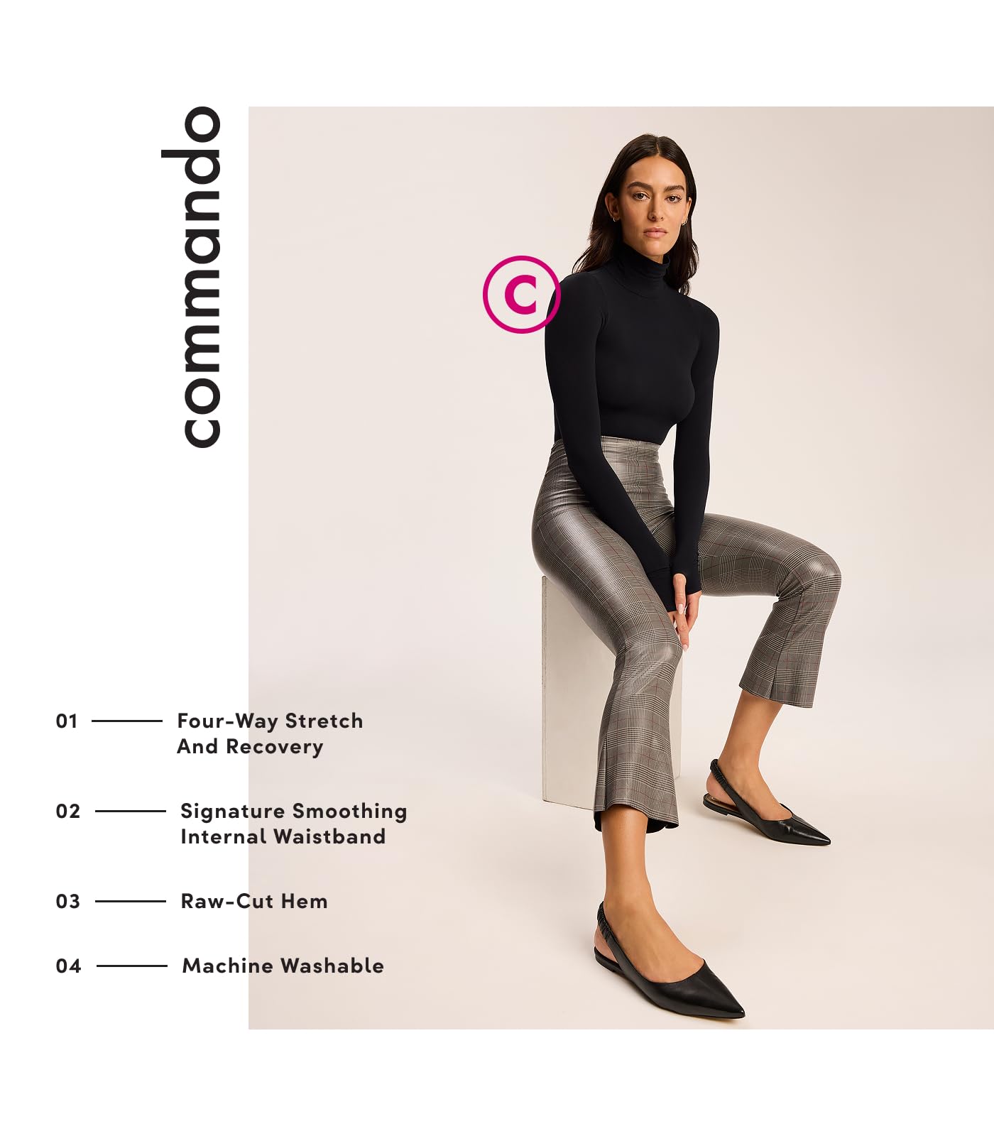 commando Faux Leather Print Cropped Flare Pant | Plaid Print High-Rise Pull-On Pants with Internal Smoothing Waistband & Four-Way Stretch | Glen Plaid, Large