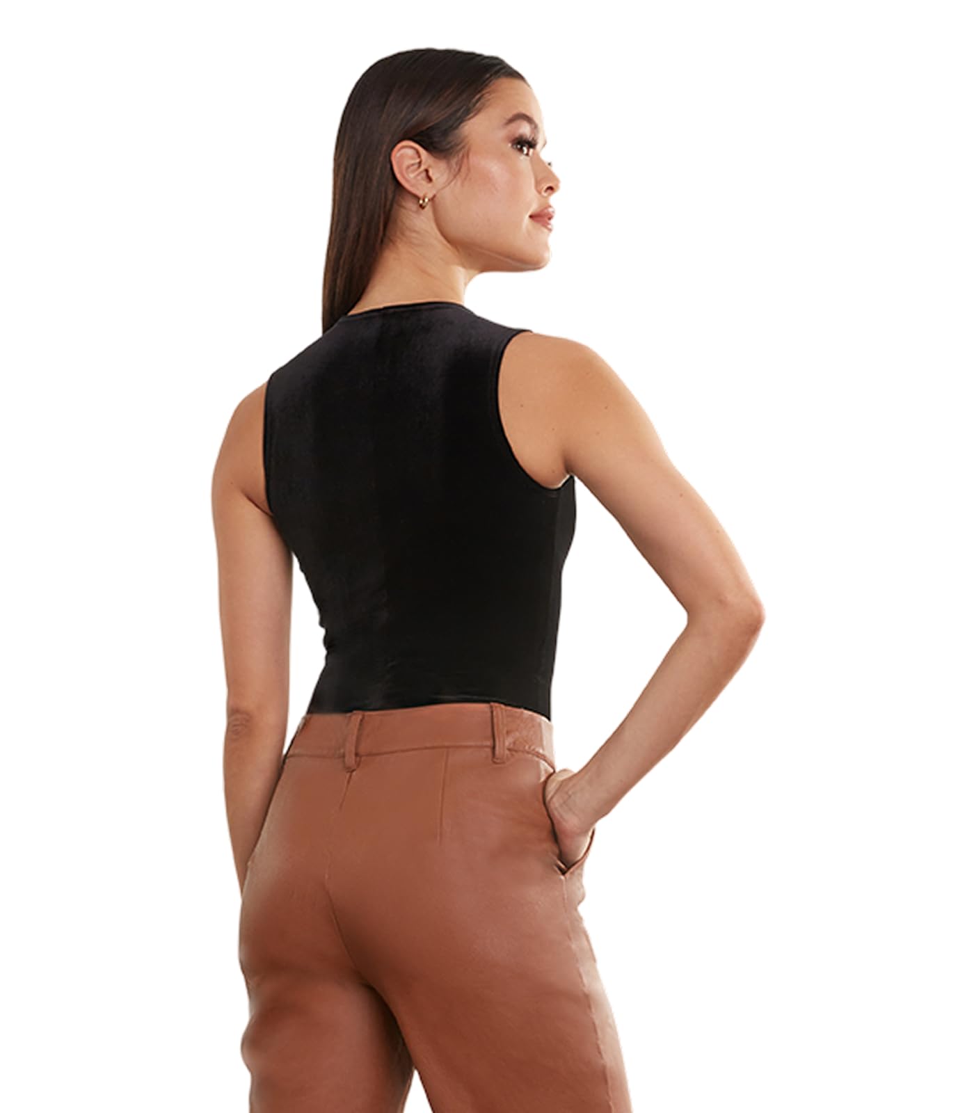 commando Velvet Signature Bodysuit | Plush Stretch Velvet Bodysuit with Raw‑Cut Thong Bottom & Four‑Way Stretch | Black, Medium